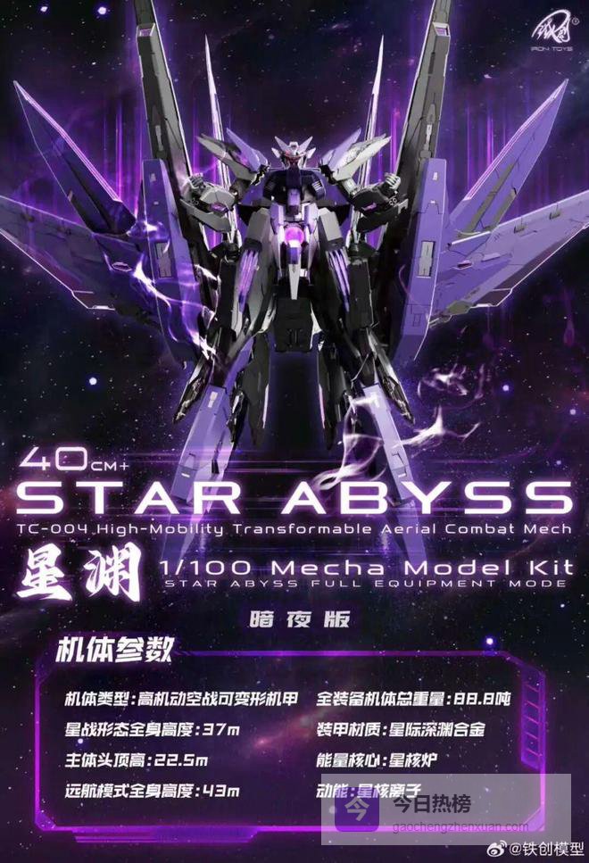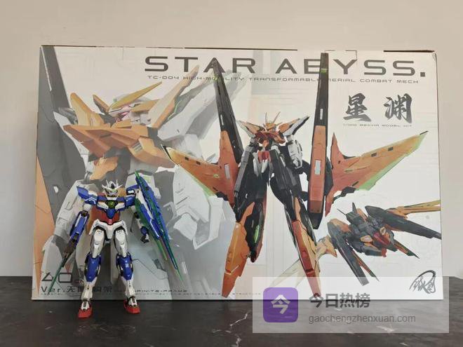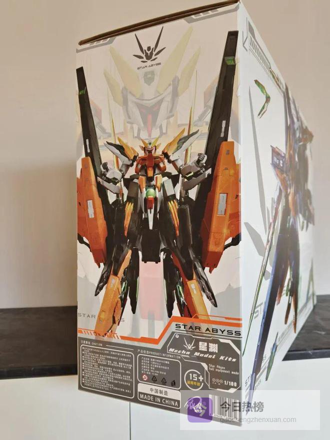 俗话说得好,官方不出,国产来凑。我们今天介绍的产品,便是由著名的“铁骨配件包厂家”铁创出品的“Star Abyss星渊”,厂家号称原创设计。但大家一眼就能看出来,它的造型其实就是00剧场版中的妖天使高达。铁创总共推出了两个配色的星渊,第一个是所谓的官方配色暗夜版紫色,第二个则是号称“应粉丝热情要求”推出的日曜版橙色。属于是把防万代装甲点满了。不过我估计购买这款产品的应该绝大多数都会买橙色吧。