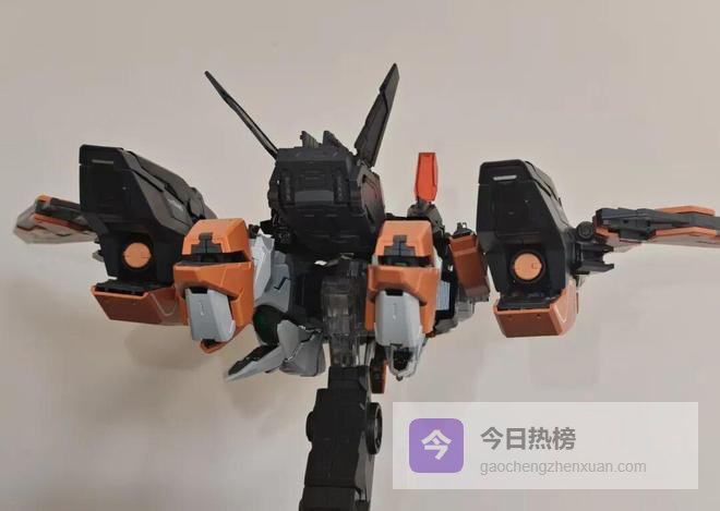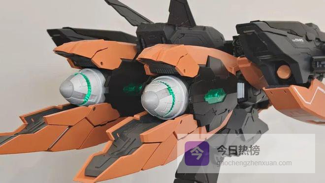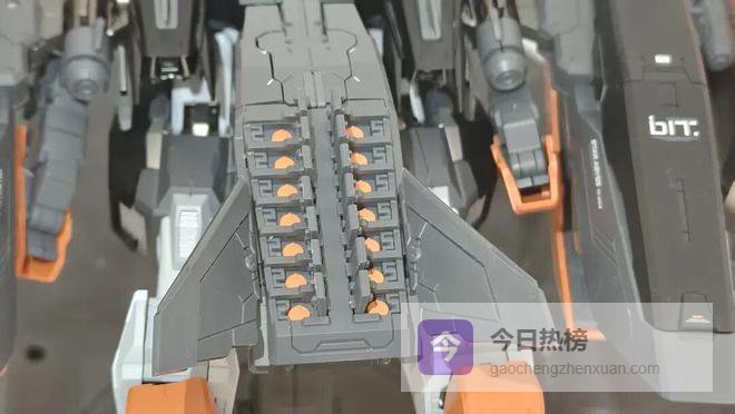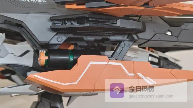 飞机侧面的巨型GN粒子炮下面的橙色盖板可以打开,露出里面的两个辅助GN推进器。机体的出力和机动性也会进一步增加。我个人盲猜这应该是风神模式开启后才会有的配置。