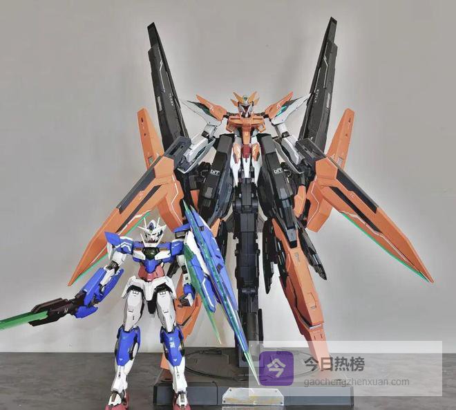 继续和同事00Q对比一下,这已经不像同一个比例的东西了。我在剧中湿疹没看出这两机体体型差距这么巨大。