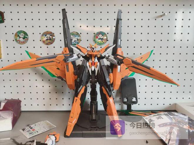 那么到这里,这款铁创星渊,或者说妖天使高达的介绍就差不多到这里了。综合来讲,它绝对是一款优秀的模型。在质量上,它的塑料质感、板件锐度和细节量也都量大管饱,做的相当到位,金属骨架的支撑力度也充足。才300元不到的价格,能拥有如此庞大的尺寸,丰富的细节和尚且不错的质量,这样的性价比还能有什么额外要求呢?要说它唯一的缺点应该就是拼装手感了,国模特有的紧实度过高费手,配合上62块板件的超高难度拼装,如果没有一定拼装经验的玩家在购买前一定要三思。如果实在喜欢去收别人拼好的成品,也好过自己兴冲冲买回一只全新的,结果费劲九牛二虎之力拼不好,手指还都开了三红。以及它的尺寸毕竟过于巨大,购买之前一定要看看家里摆不摆的下。它最大的优势,就是它是目前全市面上唯一一款MG1/100比例的妖天使高达模型。谁叫万代不做呢?对于我这种00粉来说,这也是我不得不买它的重要原因。当然更希望的是财团B支棱起来,赶紧把第二季之后的机体MG化啊!