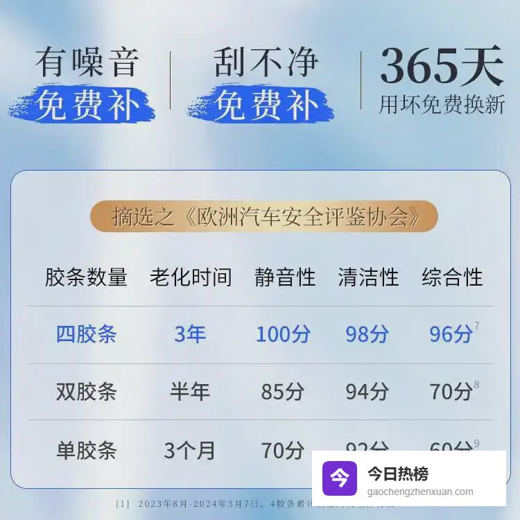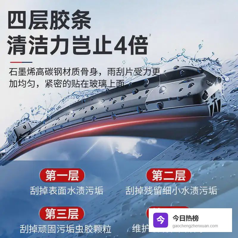 3️⃣ 超长耐久表现 四层胶条中的防UV层能抵抗阳光老化,配合石墨涂层自润滑技术,使用寿命可达普通雨刮的2倍。按每周下雨3次计算,两对装足够用两年!