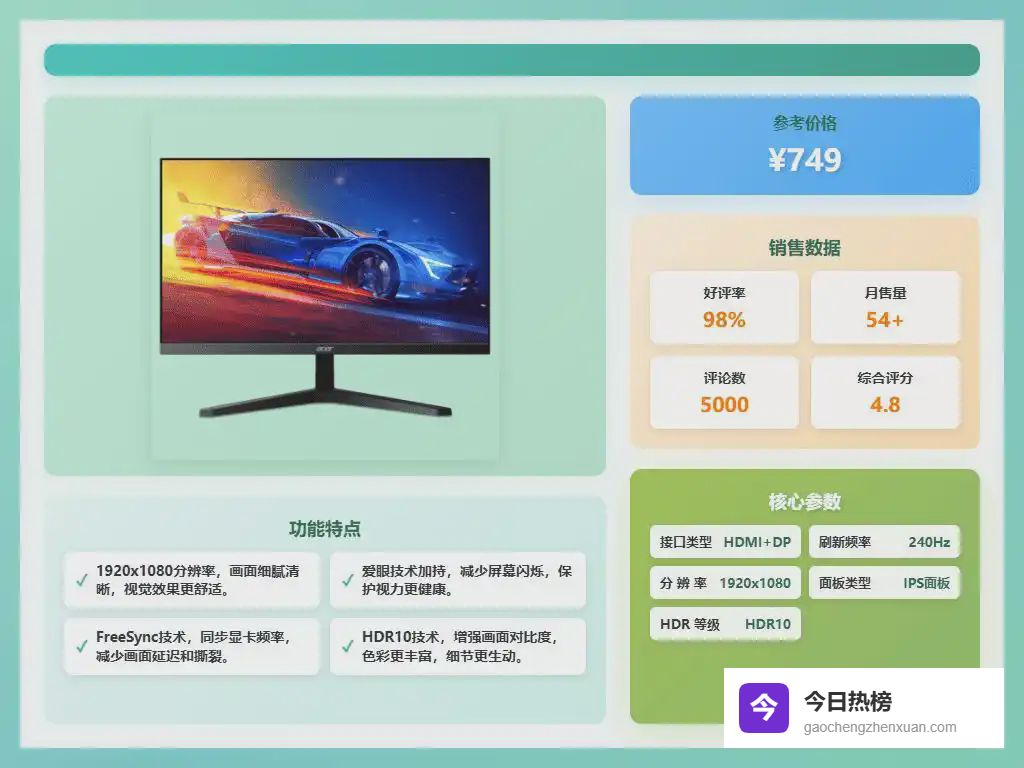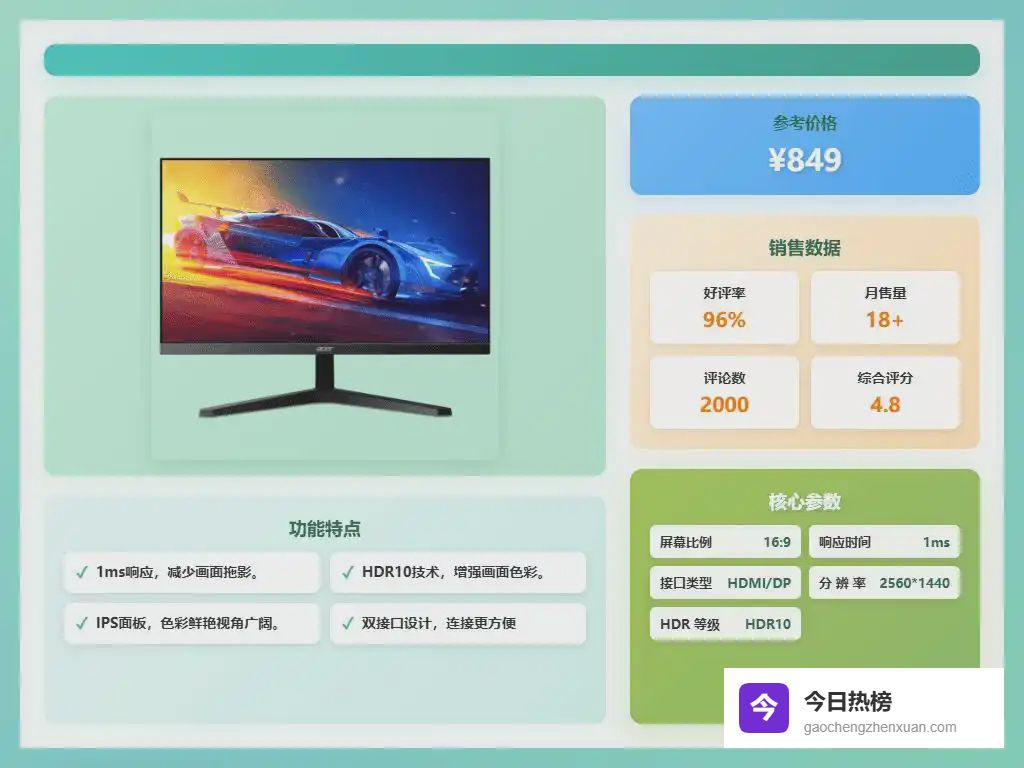 到底怎么选?其实没有绝对的答案,关键是搞清楚自己的需求。如果你是游戏爱好者,对刷新率和响应时间有较高要求,那么可以考虑宏碁的一些电竞型号。如果你更注重色彩准确性和护眼功能,经常需要长时间面对屏幕,那么戴尔的一些型号可能会更适合你。想了解具体型号的性能差异,不妨继续往下看看,或许能找到你的心仪之选!