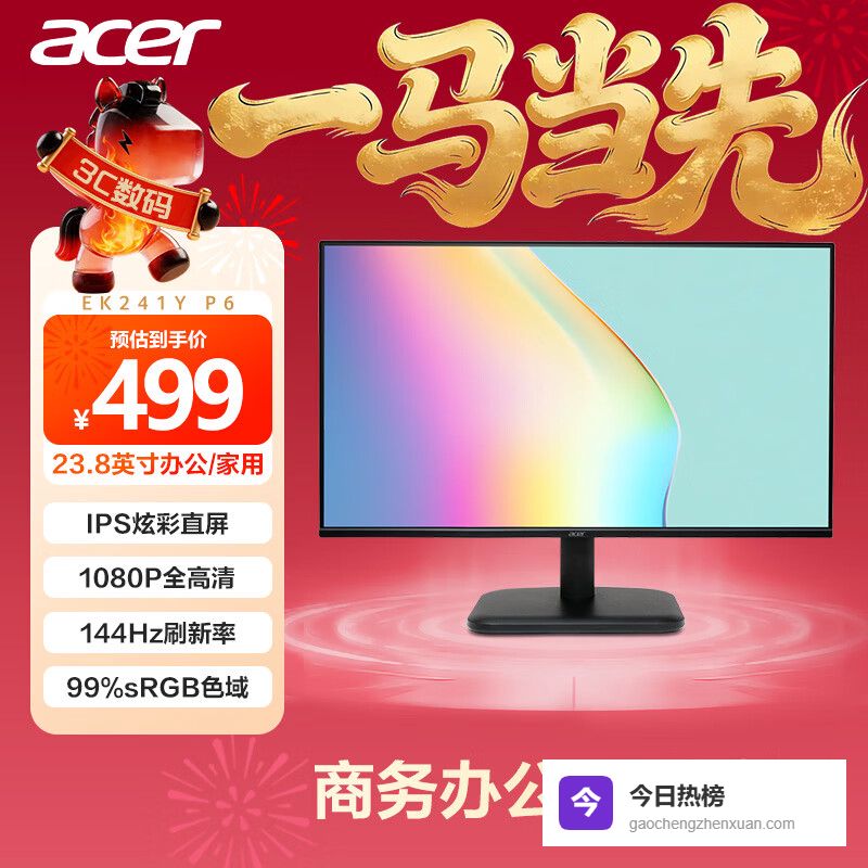 4、宏碁EK241Y P6这款宏碁EK241Y P6显示器,23.8英寸的IPS面板带来的色彩和可视角度都挺不错。它还拥有144Hz刷新率和1ms响应时间,画面流畅度这块拿捏得死死的,玩游戏或者看片追剧,体验感直接拉满。