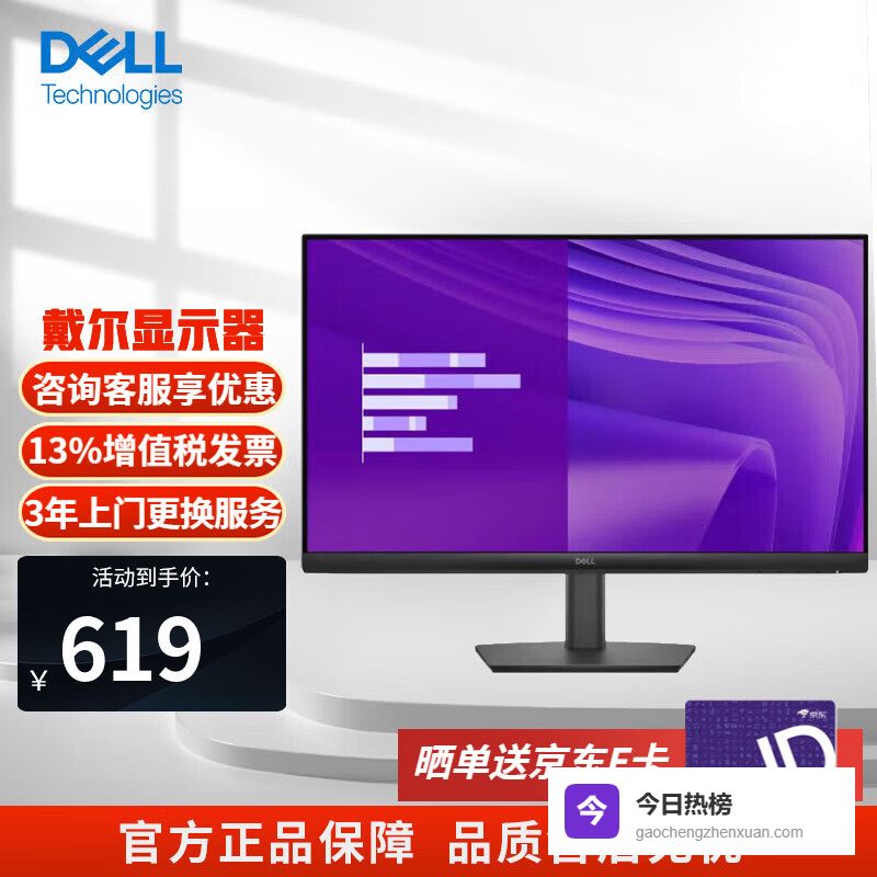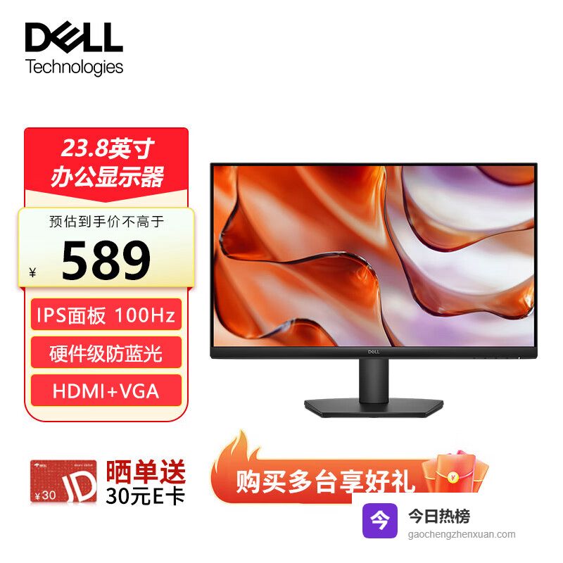 戴尔24/27英寸 IPS全高清双HDMI口可壁挂显示器微边框 硬件防蓝光 144Hz 家用电脑显示器 商用办公E2425HM 23.8英寸¥