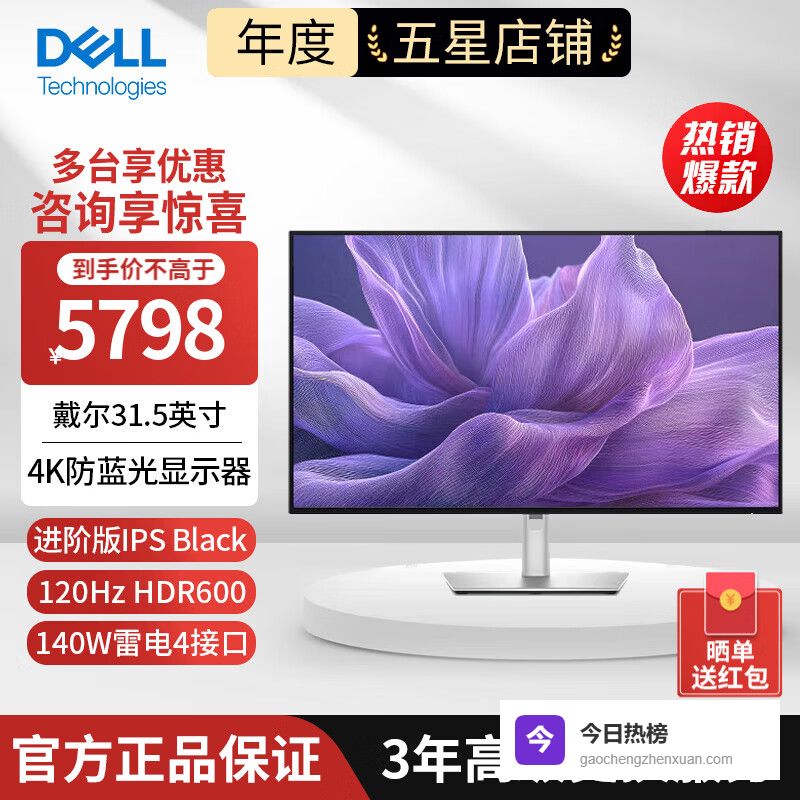 戴尔(DELL)27英寸/32英寸4K超高清IPS Black面板 HDR防蓝光旋转升降 专业电脑显示器 全功能接口显示屏Type-C 140W 31.5英寸U3225QE 120Hz¥