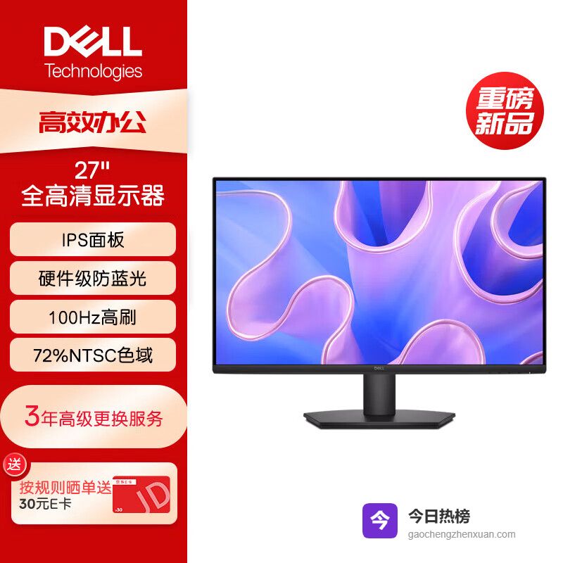戴尔(DELL)27英寸 办公显示器 FHD IPS面板 100Hz 硬件防蓝光 72%NTSC 家用全高清电脑显示屏 SE2725HM(D2721H升级版)¥