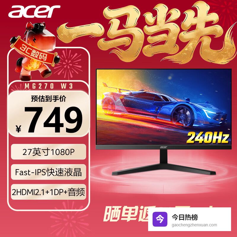 2、宏碁MG270 W3这款宏碁27英寸的显示器,用的是Fast-IPS面板,色彩这块拿捏得不错,有99%sRGB色域,看电影、玩游戏画面都挺鲜艳。再加上178°宽视角,不会出现偏色,怎么看都舒服。而且它还支持HDR10,明暗对比更强烈,画面更有层次感。