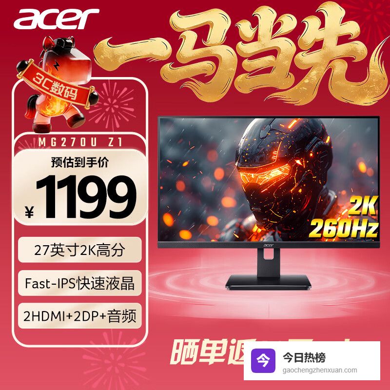 1、宏碁MG270U Z1这款宏碁27英寸显示器,色彩表现力真的不错。Fast-IPS面板搭配2K分辨率,画面清晰细腻,色彩也更生动。再加上HDR10技术,游戏里的暗部细节都能看得更清楚,画面更具沉浸感,无论是电竞游戏还是影音娱乐,都能满足你的需求。