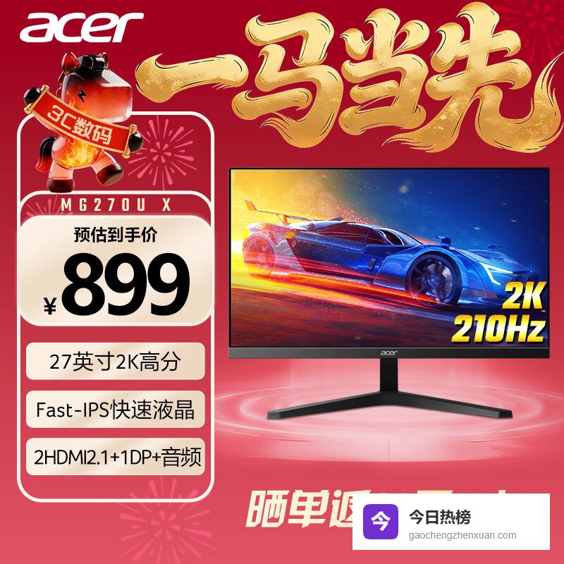 宏碁暗影骑士27英寸2K+210Hz+HDMI2.1/DP双接口HDR办公轻电竞显示器MG270U X¥