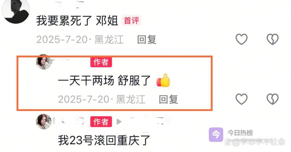 翻看邓圣洁的社交账号,几乎随处可见喝酒的痕迹,她自己也毫不掩饰,留言里全是和酒相关的话:“一天干两场,舒服了”“圈子小,事少,没事喝点小酒”“酒蒙子的日常,谁管得了我”“清醒就不浪漫了,你说对不对”。