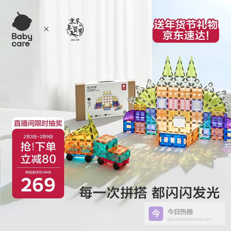 babycare儿童磁力片彩窗积木男女孩磁铁棒启蒙周岁节日新年礼物玩具100片¥