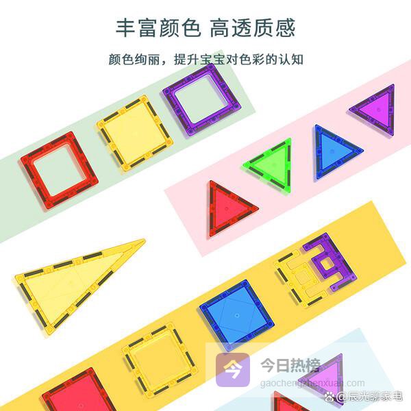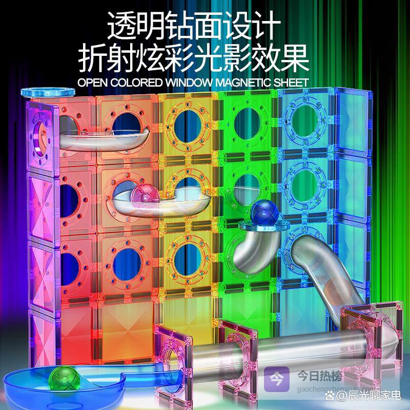 【彩窗设计】磁力片上有彩色“窗户”,折射出五彩斑斓的光影,视觉效果还挺炫。颜色丰富,能吸引孩子的注意力,把拼搭变成一场色彩盛宴,同时增加趣味性。