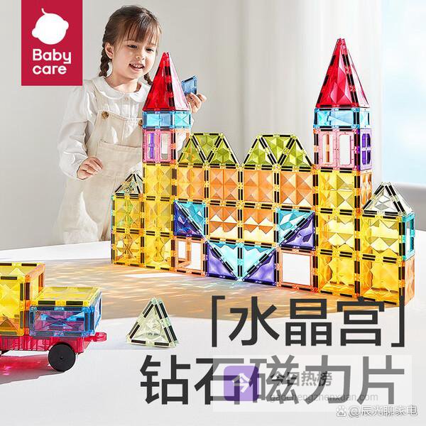 六、babycare【安全耐用】这款babycare磁力片采用无焊接一体成型的工艺,没有螺丝、胶水,安全性还不错,孩子在玩的时候不用担心小零件掉落或碎裂。用的材料也都是进口安全标准,没有异味,家长用着更放心。光滑的大圆角设计能保护孩子的小手,避免刮伤,玩得健康又安心。
