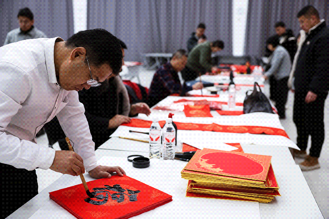 书法家现场挥毫送“福”