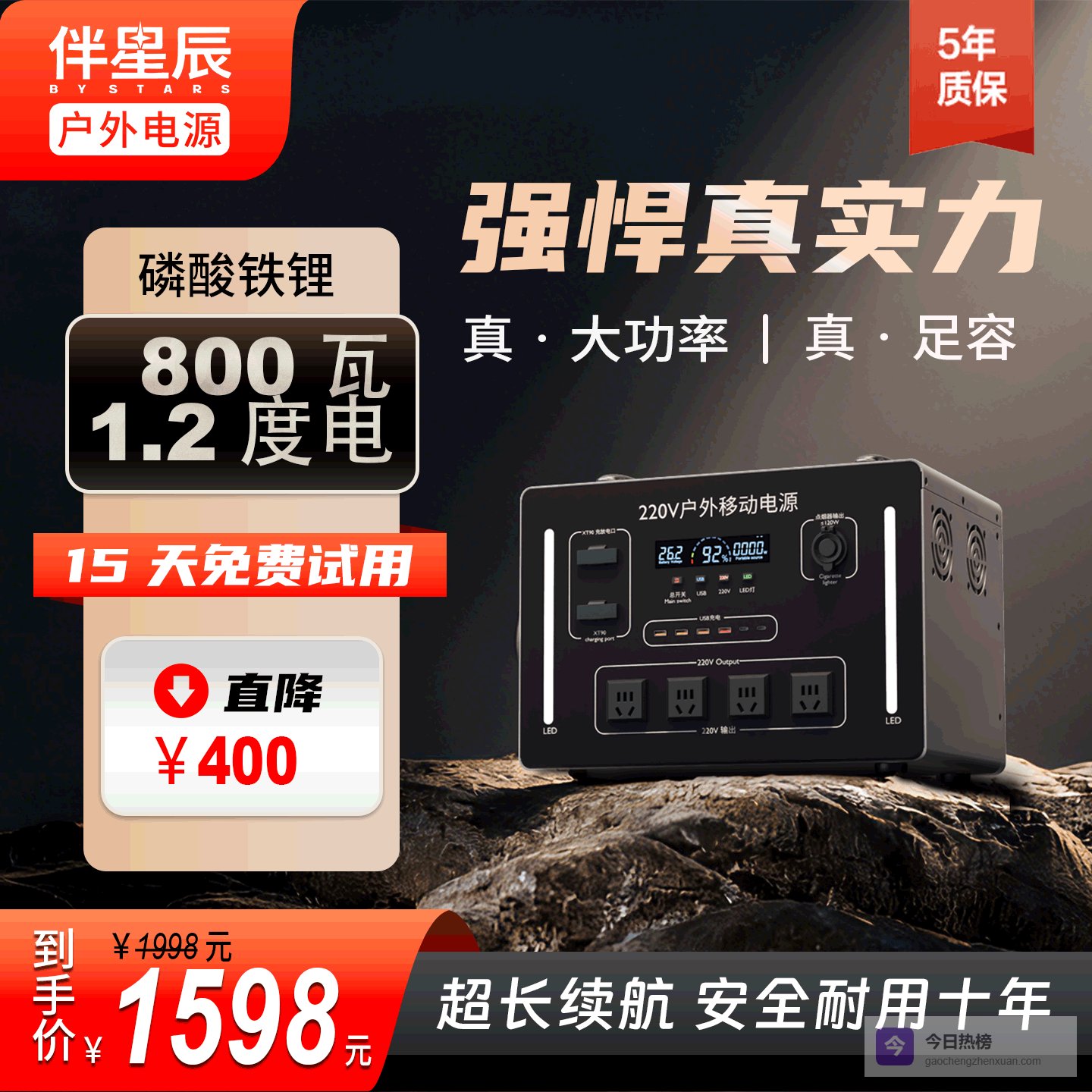 推荐入手:伴星辰大容量户外电源800W 1200Wh