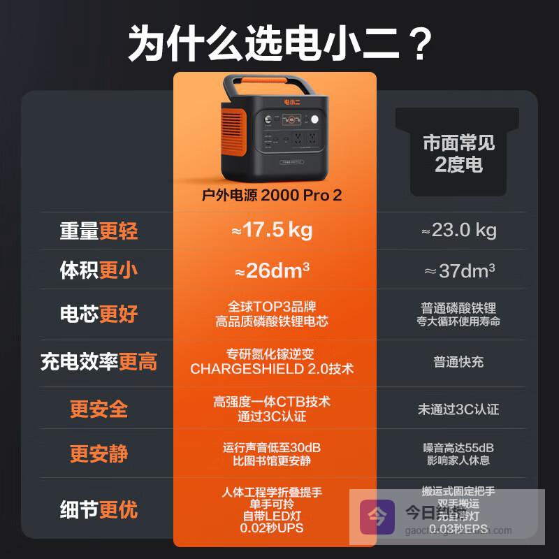 推荐入手:电小二2000Pro2快充户外电源2200W