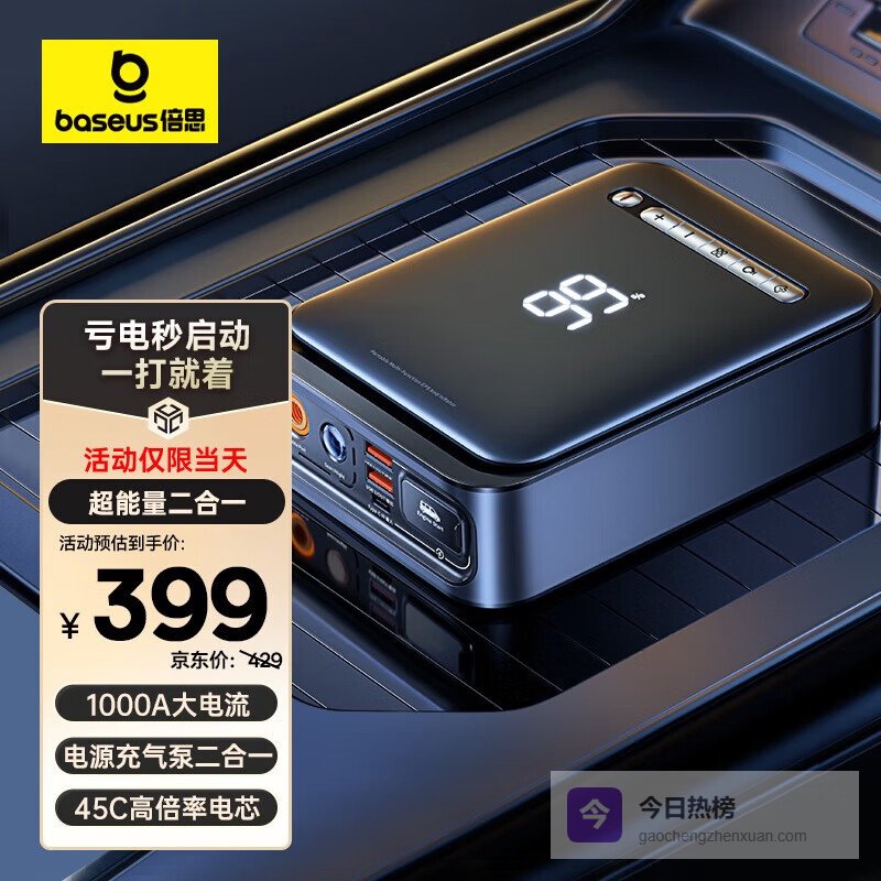 【京东自营】倍思汽车应急启动电源充气泵一体机户外电源搭电宝汽车电瓶充电器8000mAh¥