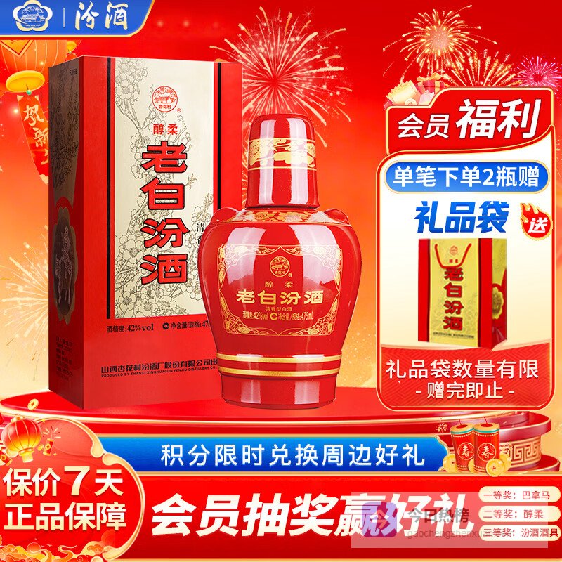 汾酒 老白汾醇柔 清香型白酒 42度 475ml单瓶装 喜事宴请送礼¥