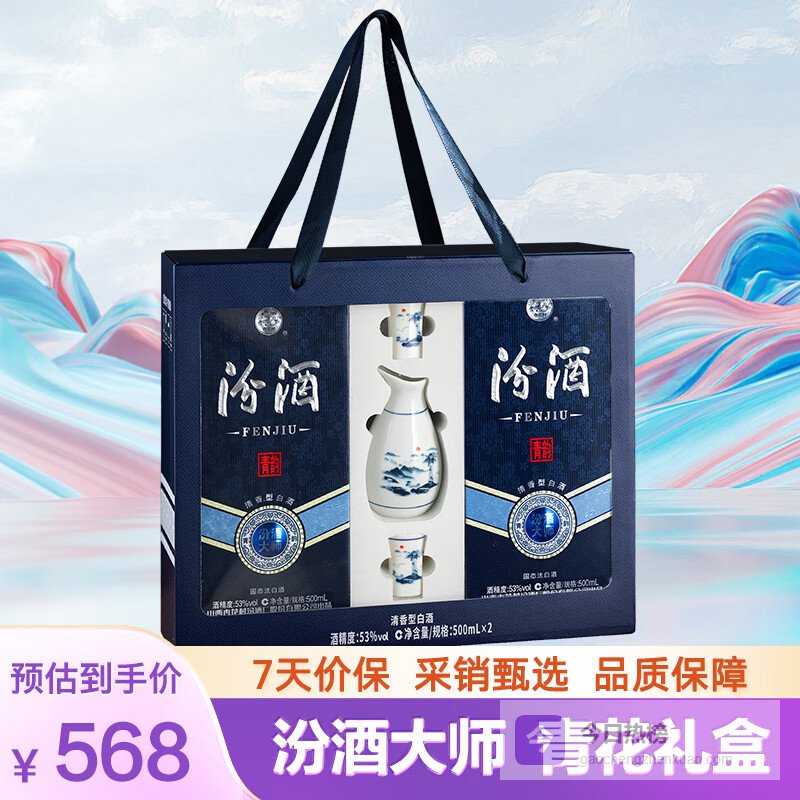 汾酒 青花大师节庆礼盒 清香白酒 53度 500mL*2瓶 礼盒装含酒具¥