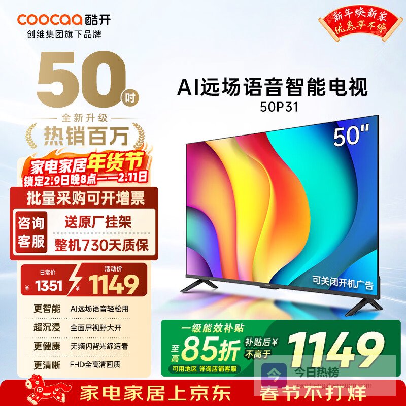 这款酷开M50最大的亮点就是4K超高清画质,细节看得一清二楚,电影、剧集都像在现场一样。HDR技术让画面更有层次感,色彩鲜艳得让人忍不住多看几遍。屏幕宽阔,视野也更开阔,追剧追到忘记世界。