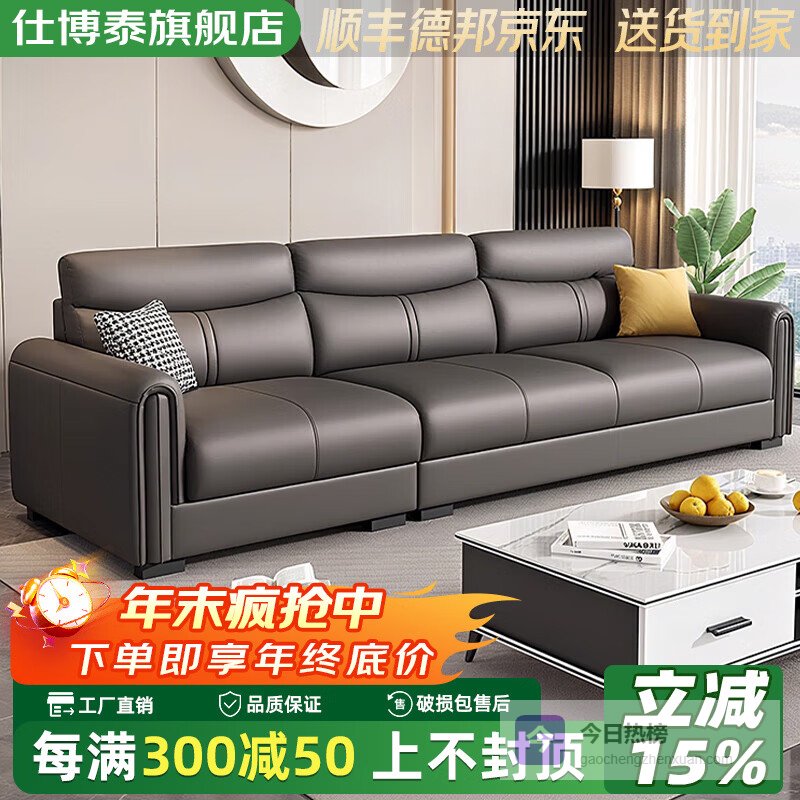 【品牌直营】仕博泰皮艺沙发客厅小户型现代简约直排皮沙发四人位【270cm】加宽版【全真皮/高密度海绵¥