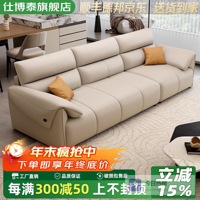 【品牌直营】仕博泰皮艺沙发客厅小户型2025新款奶油风皮沙发纳帕真皮【高弹海绵+乳胶层】多人人位3.¥