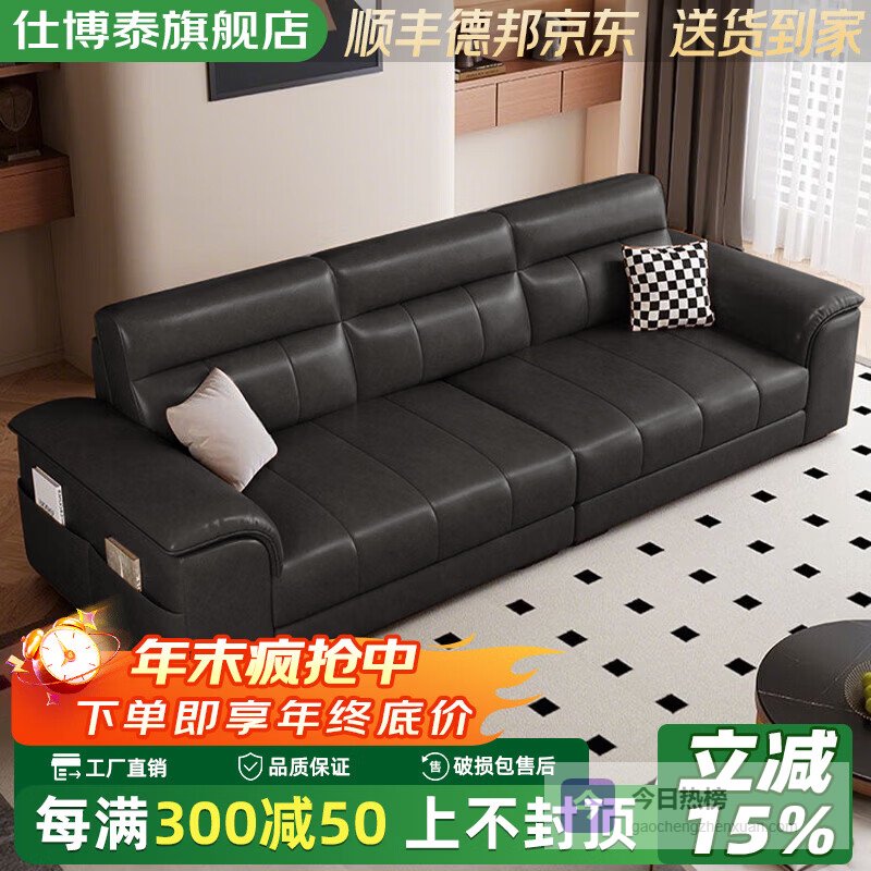 【品牌直营】仕博泰皮艺沙发客厅小户型现代简约直排皮沙发多人位【350cm】【全真皮/高密度海绵+2c¥