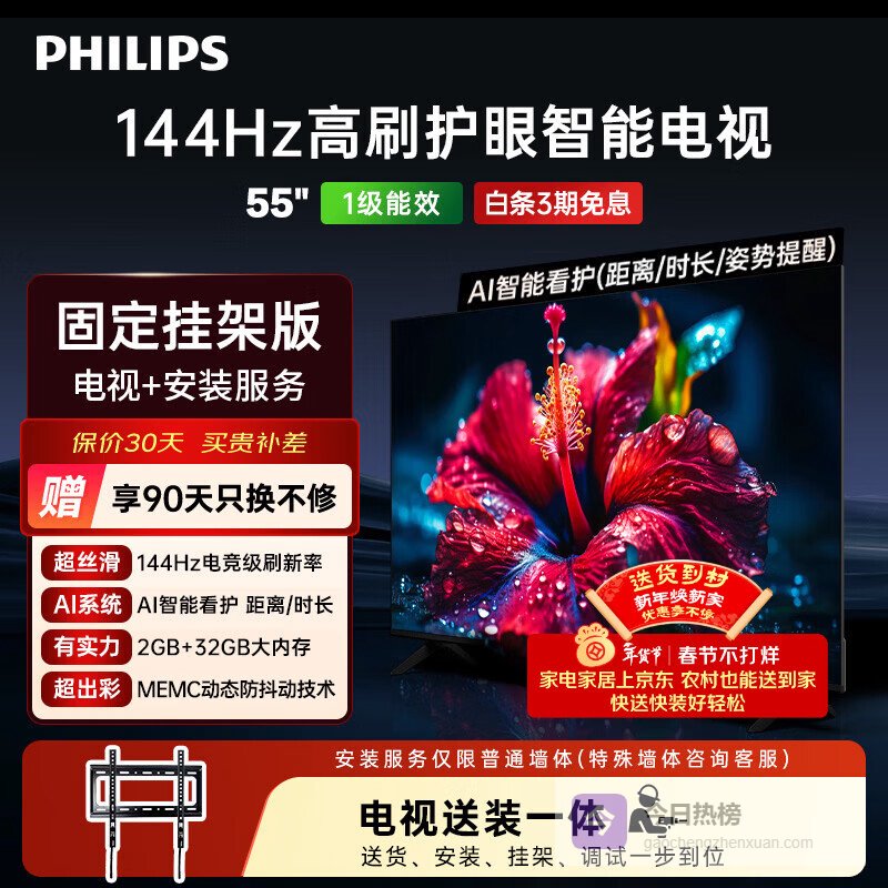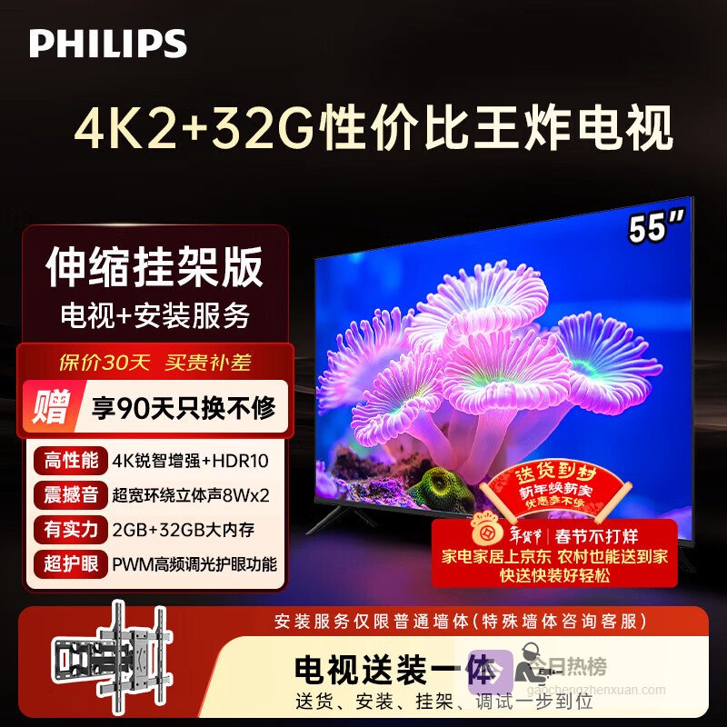 选择飞利浦55寸电视,首先得考虑你的主要用途。如果你是游戏爱好者,高刷新率绝对是刚需,像是拥有144Hz刷新率的型号就能带来更流畅的游戏体验。 如果你平时喜欢追剧看电影,那就更关注画质表现,比如带P5画质增强引擎的型号,色彩、锐度和对比度都会更好,画面也更细腻。当然,护眼功能也很重要,特别是家里有老人小孩的,选择有PWM高频调光和AI智能护眼模式的,能有效降低屏幕闪烁和蓝光,保护视力,这样全家都能看得舒服。