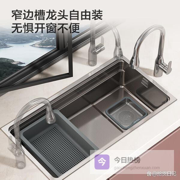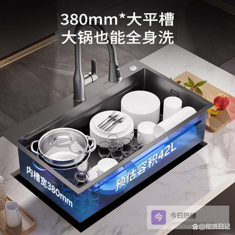 而且,它还配备了纳米抗菌涂层,抑菌率超过99%,能有效阻止细菌滋生,保护家人健康。深度达220mm,空间大,像锅、盆都能轻松放进去洗。这款水槽还支持多尺寸选择,可以和不同厨房台面完美配合,加宽槽体和窄边设计,使用空间大大增加,清理也更方便。整体上,还是挺实用又耐用的选择。
