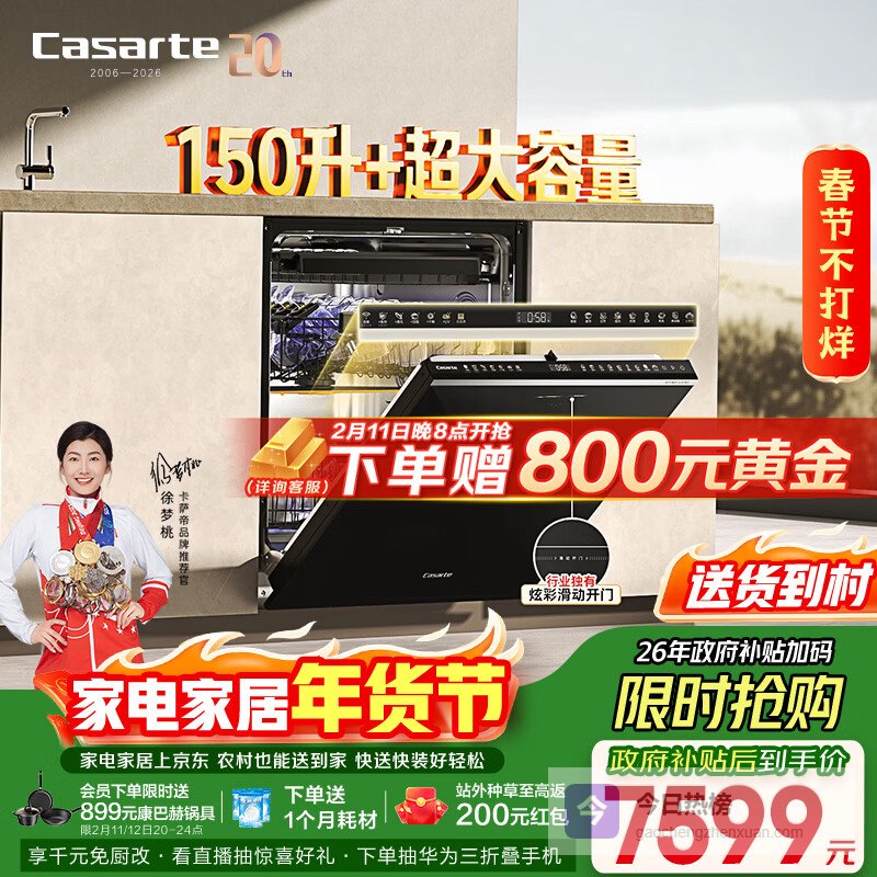 【京东自营】卡萨帝【小炫风Pro】洗碗机嵌入式150升+大容量H-Wash超净舱智能自动开关门速干1¥