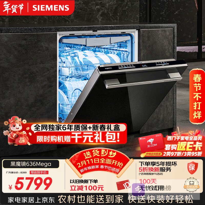 【京东自营】西门子黑魔镜636Mega150升以上容积3层碗篮全能舱【双一级认证超节能】单烘干嵌入式¥