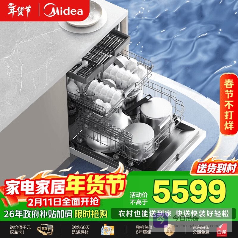 【京东自营】美的【万向X6SMax】洗碗机嵌入式150升以上七星消杀四星消毒一键洗烘蒸汽单消毒UV杀¥