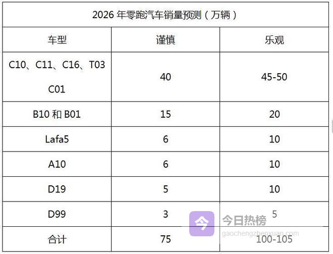 零跑B10和B01的上市时间分别为2025年4月和7月,销量也已经达到常态,今年这两款车的销量要在去年16万辆的基础上再进一步提升销量也面临较大挑战。比较谨慎的情况是,上述车型今年合计销量约15万辆;最为乐观的情况,这两款车型今年合计销量约20万辆。