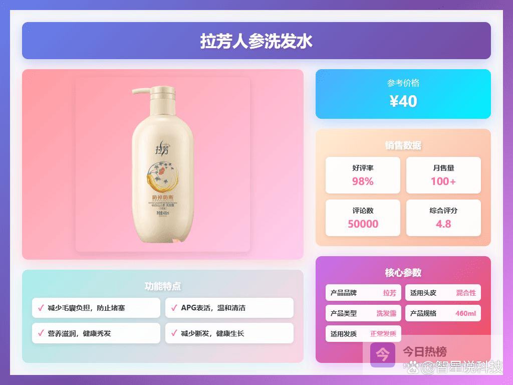 深层修护:这款拉芳洗发水特别适合受损、干枯、毛躁的头发,能深入发丝修复受损部分,让发质变得更健康,不容易毛躁开叉,头发看起来更顺滑自然。