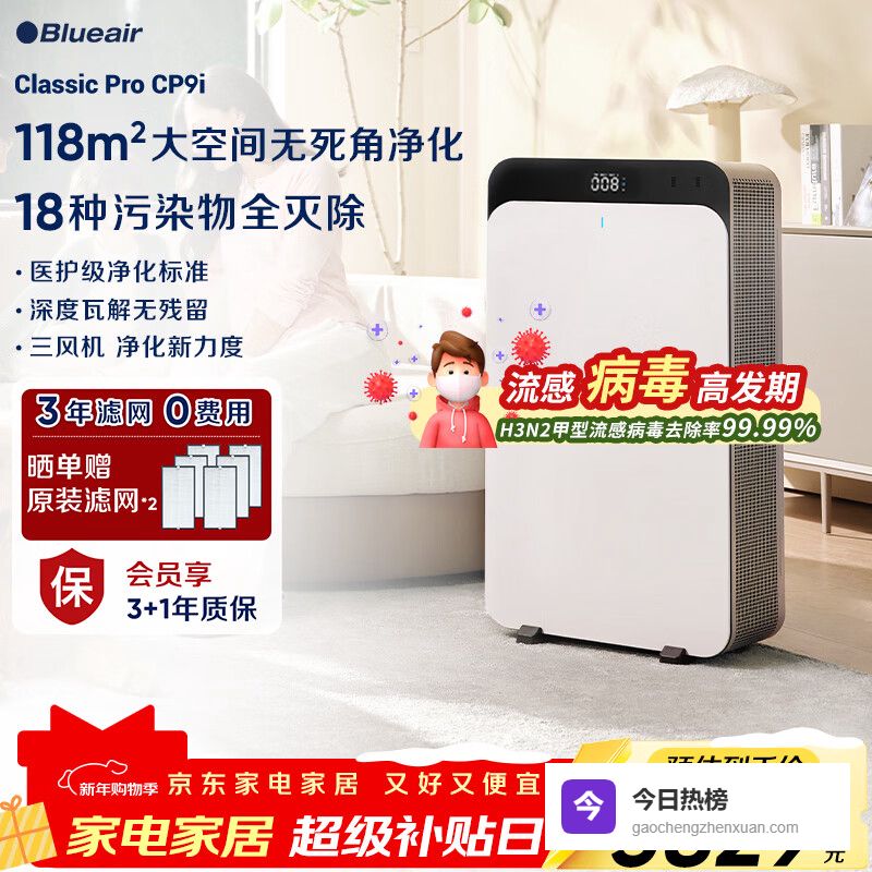 【京东自营】布鲁雅尔空气净化器除甲醛大空间医护级净化机新房急入住家用卧室除流感烟味臭味吸猫毛CP9i¥