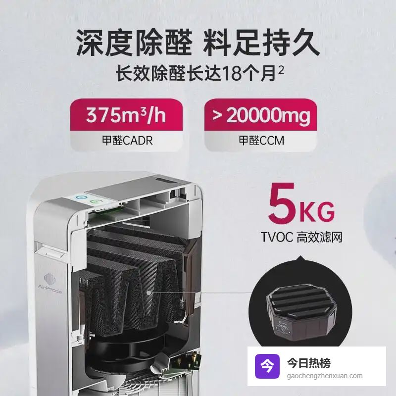 高效活性炭滤网:采用先进的无胶工艺,持久有效地吸附和分解有害气体,净化效果显著。滤网可以长达18个月无需更换,超大容量设计让用户不必频繁处理,更省心。同时,重达5公斤的柱状活性炭滤网,使得整个净化过程更为彻底,为家居带来更加安全的生活体验。