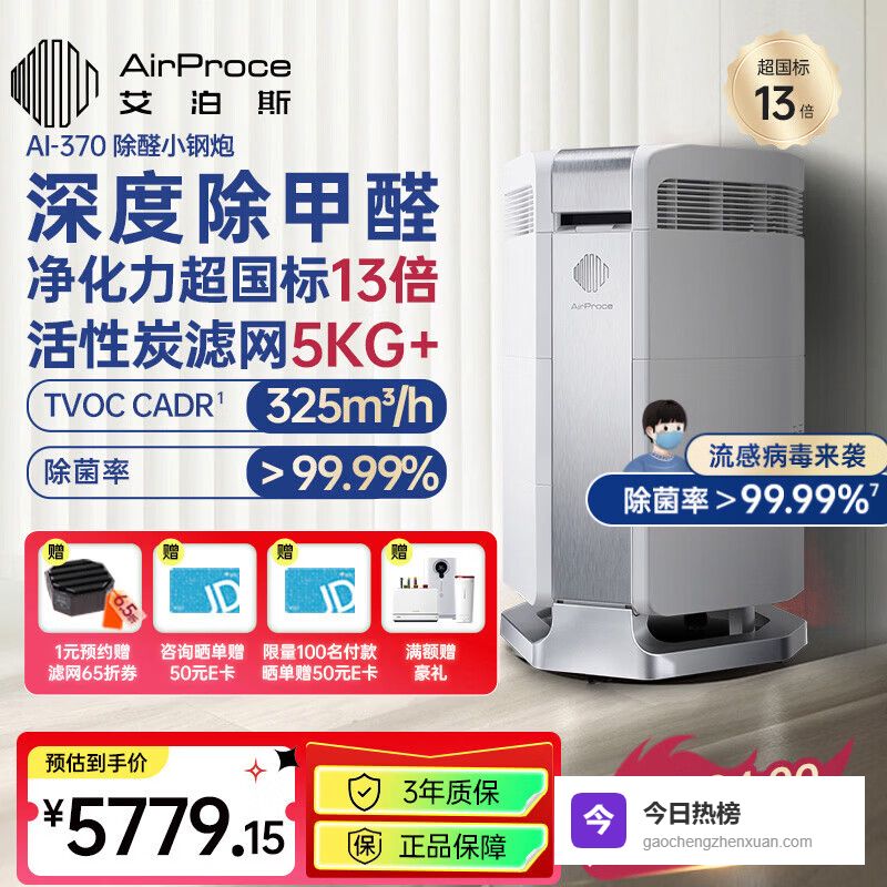 【品牌直营】艾泊斯空气净化器家用卧室除甲醛雾霾除宠物异味除粉尘AI-370AI-370深度除醛¥
