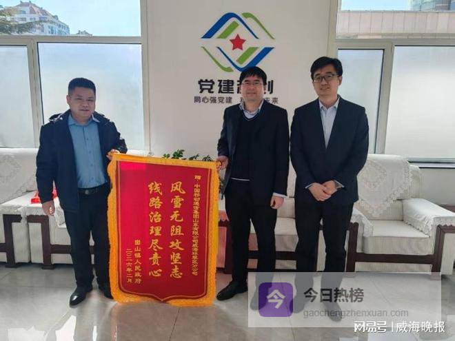 2月11日,威海市崮山镇政府有关负责人专程来到山东移动威海环翠分公司(以下简称“环翠移动”),将一面绣着“风雪无阻攻坚志 线路治理尽责心”的锦旗亲手送到企业负责人手中。“这面锦旗既是认可,更是动力。”接过锦旗的环翠移动副总经理侯春生表示,“能为老百姓办实事、为乡村添新貌,是我们作为驻地央企应尽的责任。”