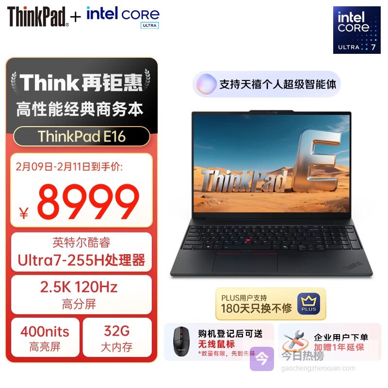 ThinkPad【国家补贴15%】联想E16 AI PC 轻薄便携笔记本电脑酷睿Ultra7 255H 32G 1T 2.5K 商务办公本 黑色¥
