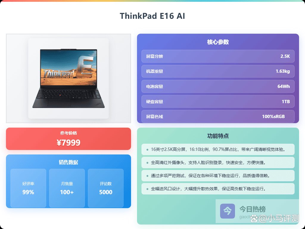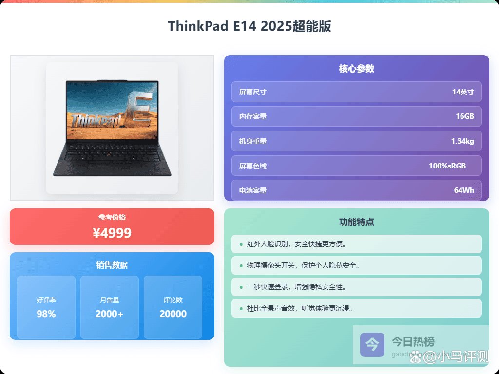 选购联想笔记本的时候,CPU也是个重要考量因素。对性能有较高要求的,比如需要运行大型软件、玩游戏,那肯定要选搭载较新英特尔酷睿或者AMD锐龙处理器的型号,像文章里提到的ThinkPad E14 2026超能版和ThinkBook 16,它们的处理器性能都很强劲,能满足你的需求。另外,内存和存储也很重要,建议选择16GB或以上的内存,以及512GB或以上的固态硬盘,这样能保证电脑运行流畅,存储空间也充足。最后,别忘了看看接口是否够用,毕竟现在很多设备都需要通过USB接口连接电脑,接口多了用起来更方便。