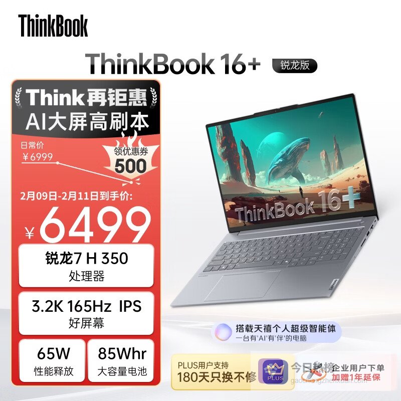 ThinkPad【国家补贴15%】联想笔记本电脑ThinkBook16+ AI元启版 锐龙AI7 H 350 32G 1T 3.2K 16英寸高刷¥