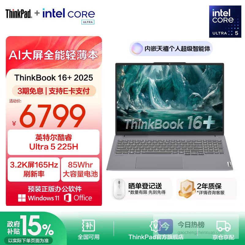 ThinkPad【国家补贴15%】联想 ThinkBook 16+ 2025AI全能本 英特尔酷睿处理器 16英寸商务轻薄笔记本电脑 热销Ultra5 32G 1T 00CD¥