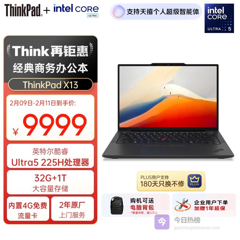 ThinkPad【国家补贴15%】联想X13 全互联商务办公笔记本电脑 酷睿Ultra5-225H 32G 1T AI PC轻薄本¥