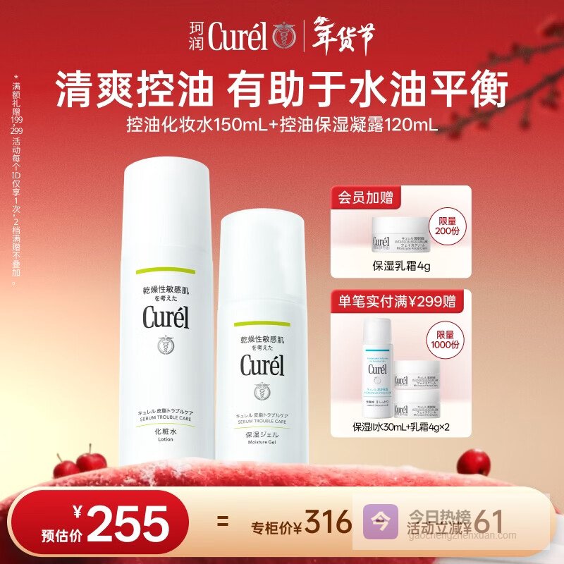 珂润(Curel)控油套装(化妆水+凝露) 护肤品保湿户外出游敏肌成毅代言新年礼物¥