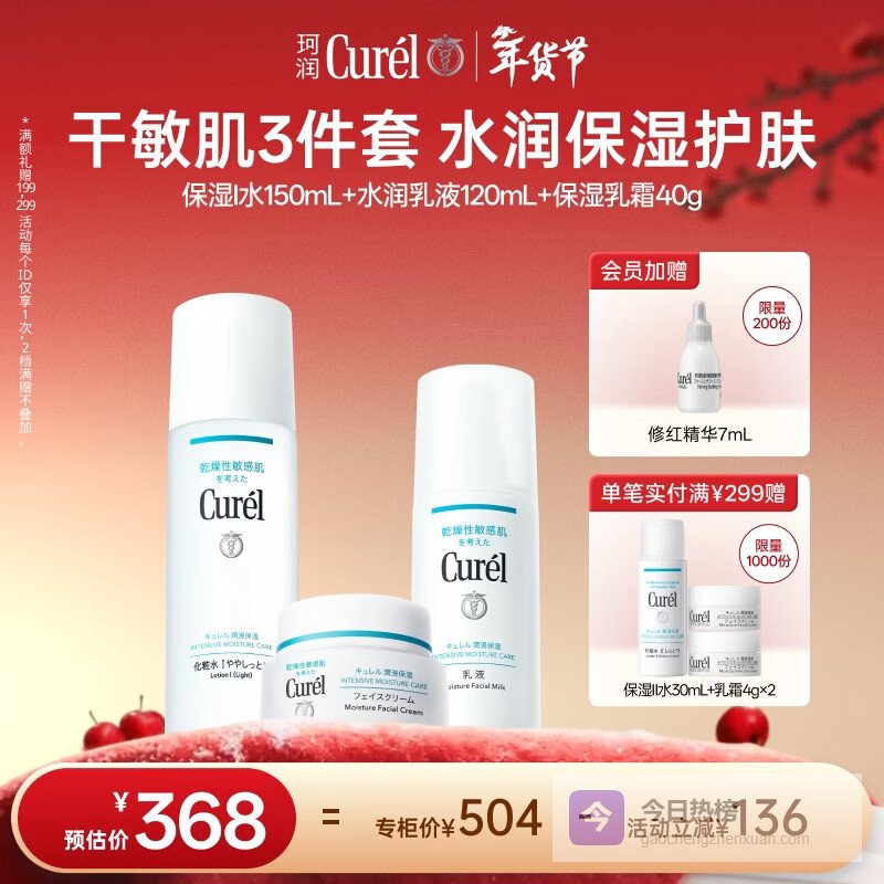 珂润(Curel)保湿水乳霜套装(1号水+乳液+面霜)护肤品敏感肌成毅代言新年礼物¥