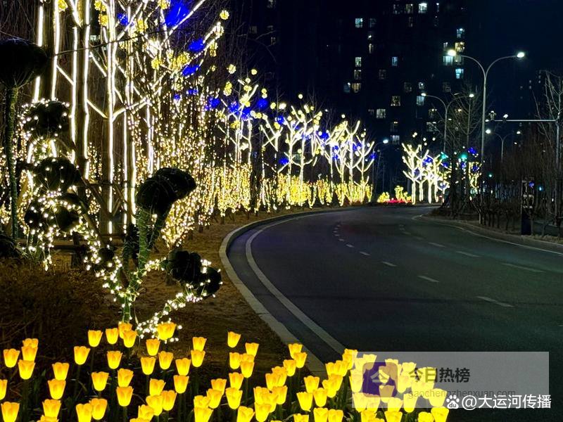 9处亮化节点各具特色。其中,“鱼跃运河·潮起商埠”以鱼形灯饰模拟漕运渔火,呼应运河生态文化;“龙马精神·智启未来”通过马形光影装置,寓意商务区奋发进取的姿态;“福泽滨水·乐享生活”则围绕“福”文化布置灯光装饰,营造适合市民休闲互动的温馨场景。
