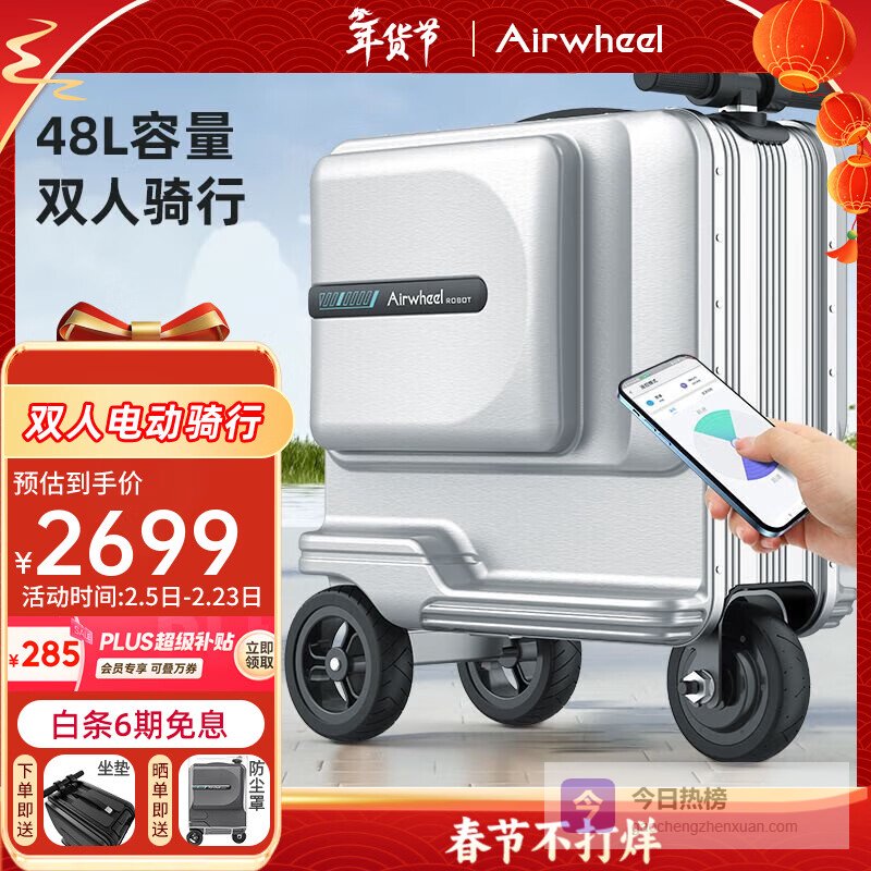 爱尔威(Airwheel)电动行李箱智能拉杆箱大容量可2人骑行旅行双人代步24英寸 豪华版+备用电池(颜色可备注)¥