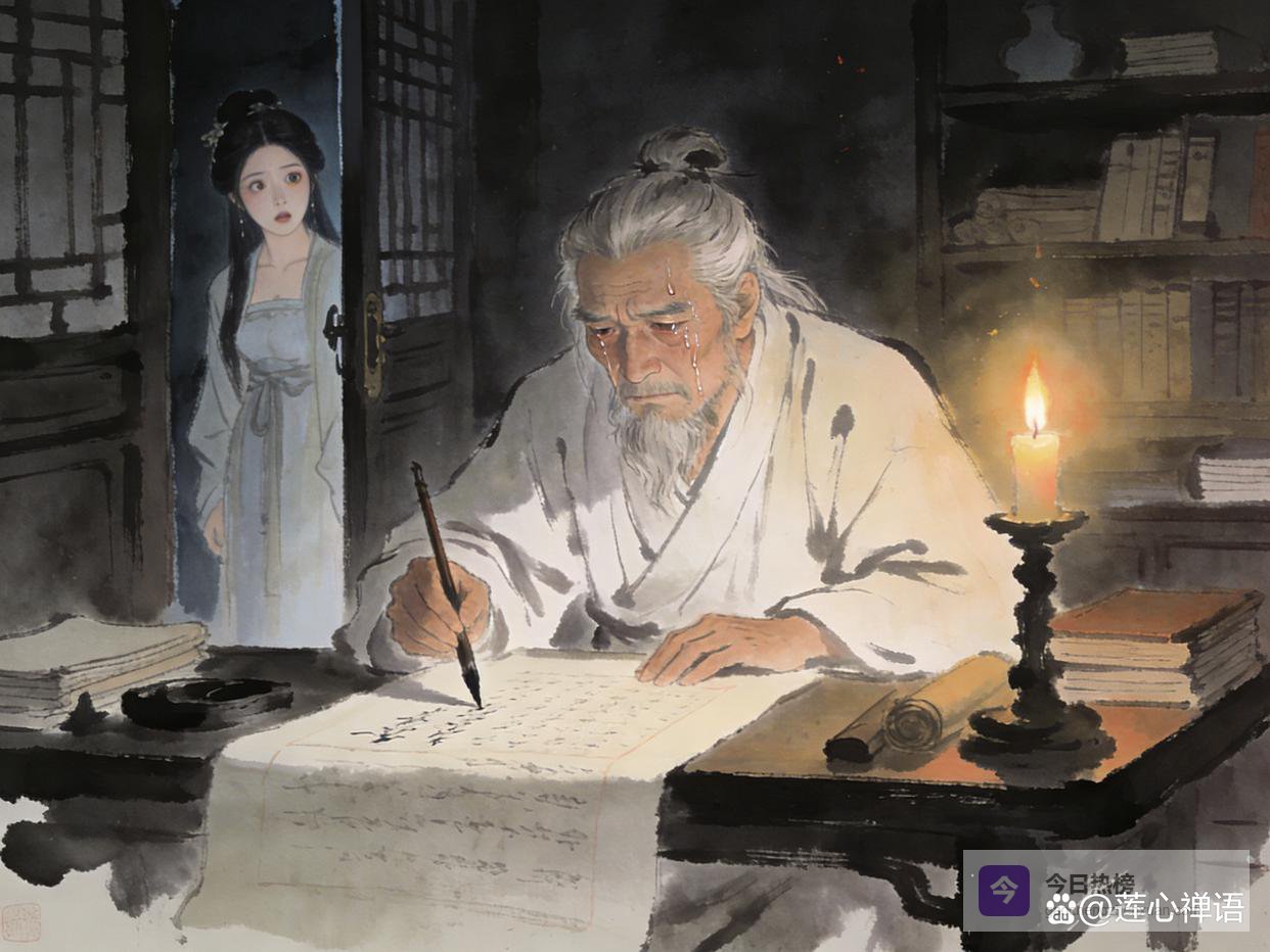 小楼昨夜又东风,故国不堪回首月明中……”当他写下最后一句“问君能有几多愁?恰似一江春水向东流”时,泪水终于决堤,滴落在墨迹未干的纸上,晕开一团团的水渍,如同他破碎的心。