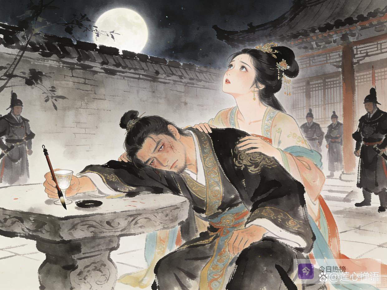 小周后闻声进来,看到了桌上的那阕词。她只看了一眼,便浑身一颤,如坠冰窟。她比任何人都懂李煜的词。这首《虞美人》,不再是简单的怀念故国,字字句句,都浸透了一个被夺去挚爱、践踏尊严的丈夫,用生命发出的最后悲鸣。这是一种以死相搏的决绝,是一种对这肮脏世道最彻底的控诉。她明白了,她的丈夫,已经存了死志。
