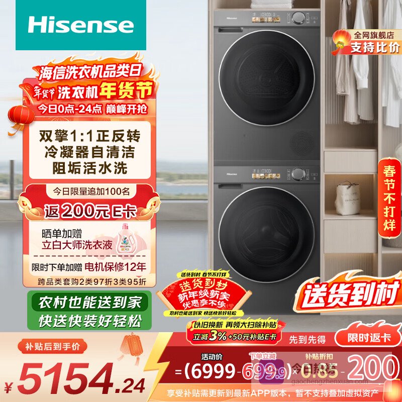 【京东自营】海信璀璨棉花糖洗烘套装12KG大容量滚筒单洗洗衣机+热泵烘干机HG12M5S+M5S以旧¥